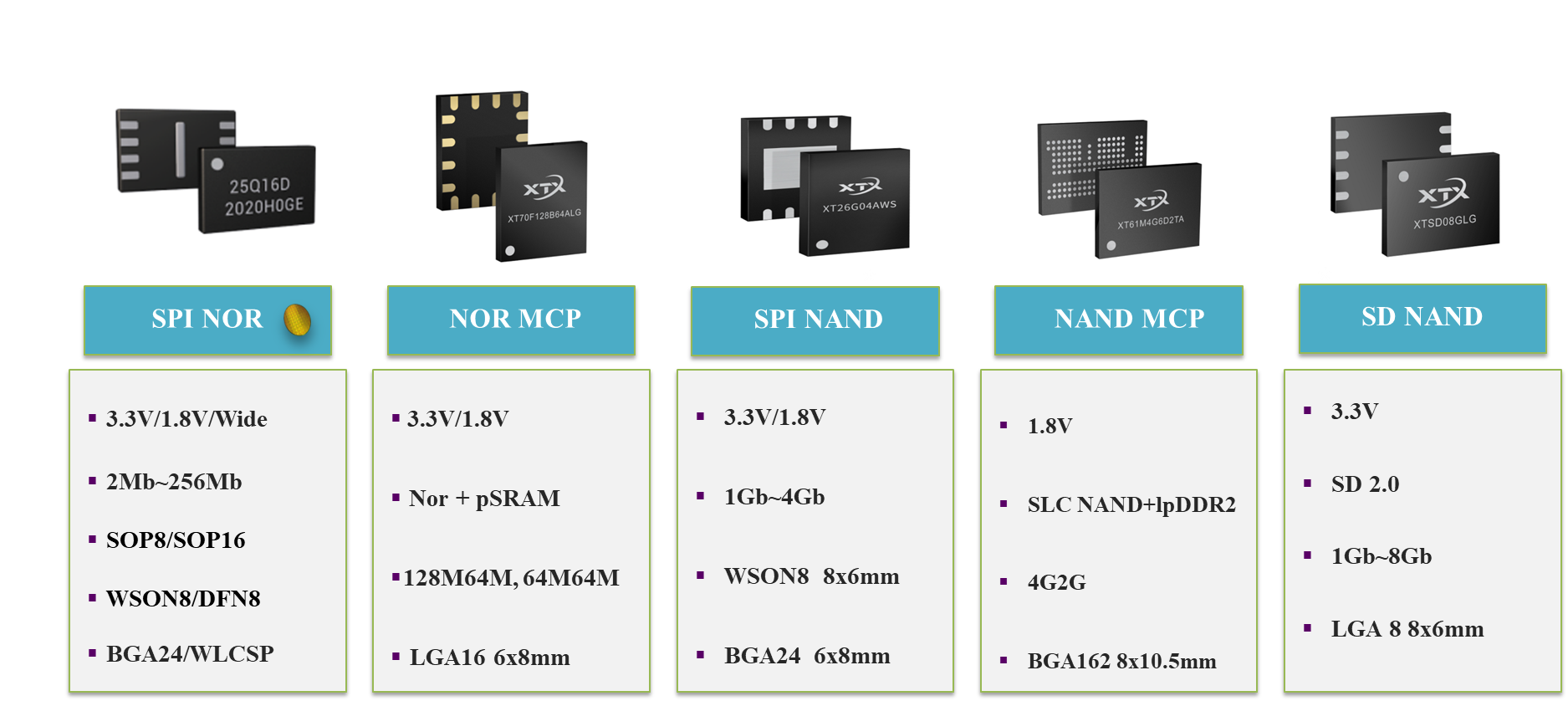 芯天下成立于2014年,致力于成为全球卓越的通用芯片设计公司。公司自成立起即专注于代码型存储器的研发创新,产品覆盖成熟的工艺制程,大批量在交付的产品包括65nm spi nor & 24nm slc nand等,同时55nm spi nor 高可靠性、高性能3v xt25fxxf系列也将在本季度相继推出。 芯天下产品广泛应用于物联网、显示与触控、通信、消费电子、工业等领域。spi nor系列产品容量覆盖1mbit~1gbit,其中512mbit&1gbit 产品将在明年上半年面向市场。芯天下坚持“诚信共赢、开放创新、坚持奋斗、追求卓越”的核心价值观,为来自全球各地的客户提供优质服务,主要客户包括三星、美的、中兴通讯、合力泰、小天才等。